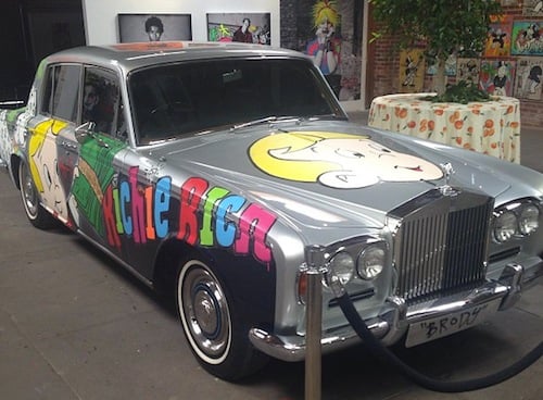 Although Monopoly inherited what many automotive enthusiasts would already consider a “piece of art,” the artist decided to re-work the car’s exterior with his signature style. Monopoly, who is famous for his satirical take on the Monopoly Man, turned Brody’s former ride into the “Richie Rich” mobile, outfitting the vehicle with numerous paintings of the famous fictional comic book character. The Rolls Royce Shadow also features Brody’s name on the license plate in a graffiti style front.