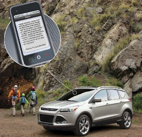 In a press release Ford says “The idea behind the campaign was sparked by the concept of being referred to as “brand new.” Brand New, a saying often used in the African American community, refers to a person who has tried something new or who has bettered him or herself in some form or fashion.” The format of the TV commercial is documentary style with comedic tones. For example, the smart phone text shown in the photo ends “…I understand you’re into new things and all, but you guys are really trippin’.” Shawn Lollie, Ford manager, Multicultural Marketing says in the Ford press release “We created a series of characters who have their lives turned completely upside down once the featured family purchases an all-new Escape.” The new activities that the characters adopt after buying the Escape include spelunking, kayaking and surfing.