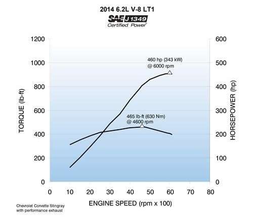 The official testing is in and the new Chevrolet Corvette has more power than originally expected. Earlier this week, Torque News Reporter Denis Flierl reported that the 2014 Corvette Stingray would likely come in higher in power than originally hinted at by Corvette. GM released the official figures today and SAE testing of the ‘vette’s LT1 V8 has proven the engine capable of generating 460 horsepower and 465 ft-lb of torque. These figures are with the available performance exhaust system. With the standard exhaust both are 5 less.