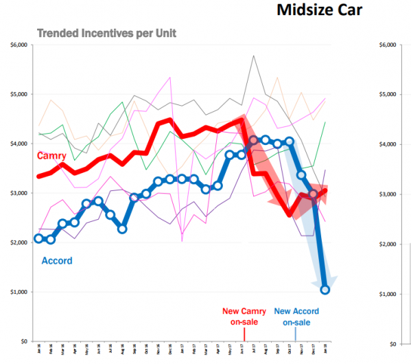 Thanks Joel. We fixed up that "Ford vs. Mustang" typo after you brought it to our attention. The source of the incentives graph is Motor Intelligence. We took a peek at the public Toyota sales websites and the Camry incentives seemed to match the graph pretty closely as best we could tell. Good points about the Camry and Accord safety.