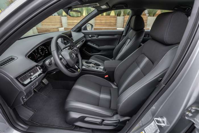 The new Civic has a 1.5-liter turbocharged engine that offers 177-lb-ft of torque at just 1,750 RPM. The engine works with a continuously variable transmission (CVT) that has paddle shifters for manual control. The Touring trim has an EPA-estimated 34 MPG Combined rating, and we exceeded that in our spirited driving observing 38 MPG. The Civic provides its best performance on 87 octane regular gasoline. Note that the LX and Sport trims have a less capable engine. Why did Honda label a trim with lower performance "Sport?" We don’t know.