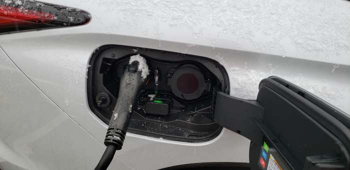 Our testing of the Outlander showed that it had no meaningful battery range loss in testing with ambient temps around 20 F. The charging rate seemed to remain the same as we would expect in warmer conditions, and our range miles were not impacted much by the HVAC system.