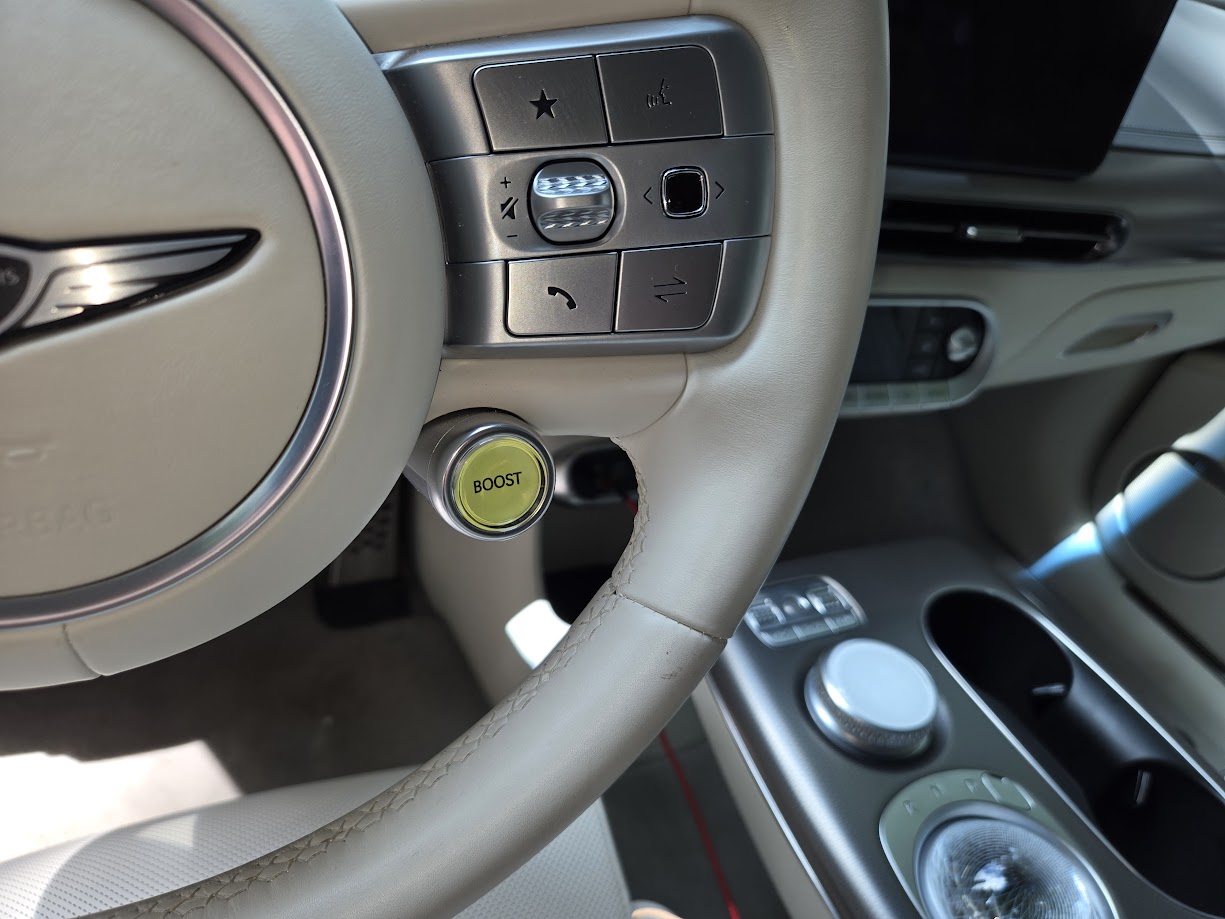 The GV60 Performace even has a Boost button on the steering wheel that is a quick and easy way to prep the vehicle for a burst of speed. We like it MUCH MORE than a Sport Mode. It’s not launch control. Rather, it just gets the vehicle ready to sprint at any speed and in any situation.