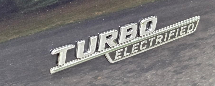The GLC has a 2.0-liter engine with an electric-assist turbocharger. The idea is that a small electric motor helps turn the turbine before the exhaust gas does that for it, thus quickening the boost response time. We could not feel that effect. AMG describes the vehicle as a light hybrid and also says that “...the system also briefly provides an additional boost of 13 hp by the belt-driven starter generator (RSG).”