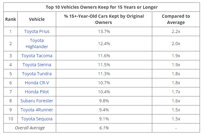 Rather than want to move on from a Prius, it turns out that a new study from iSeeCars proves that the Toyota Prius is the vehicle that more people keep for over 15 years than any other. The reason the Prius is a car so many people keep so long is that it is a satisfying vehicle to own. The Prius has ridiculously low maintenance costs, has a huge cargo volume, and its energy cost per mile is lower than many battery-electric vehicles.