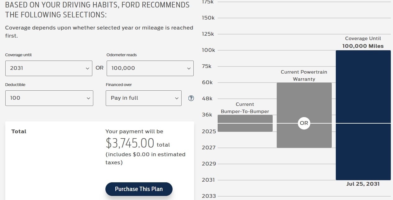 Most plans are sold by years of coverage and miles in total driven. For example, you may opt to buy a plan that has a total of eight years of operation from the purchase date of your new car. That would extend your bumper-to-bumper coverage for five full years. (8-3=5). If you drive fewer miles, you will spend fewer dollars. If you drive a lot of miles, your plan will cost a bit more.