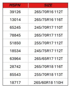 22 Sizes: BFGoodrich will create 22 sizes of the Advantage Control HT tire, bringing the total number of sizes in the Advantage Control line to 122.