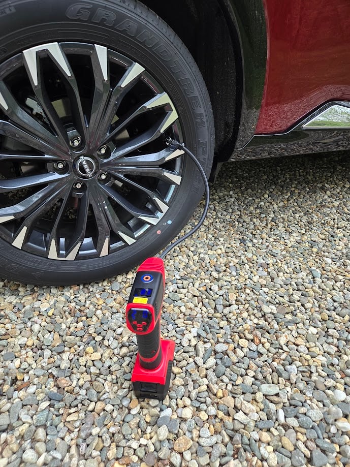 It took only a few moments for the pump to inflate our 2024 Nissan Rogue’s front tires from 27 psi to 33 psi. The temps had dropped from 70F yesterday afternoon to 40F the morning we pumped the tires up. Air pressure changes about 1 psi for every 10-degree F change in temp. Our test vehicle was a bit low on air, so the test was well-timed. The pump is significantly quieter than the other ones we own. The specs say 53 dB, and that means nearly silent to our ears.