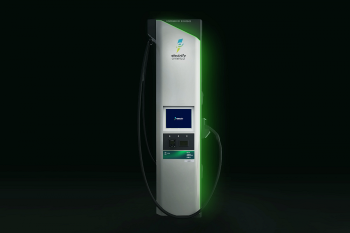 Electrify America shared images of its new charging location concept and also its next-generation charger with functional design updates to improve the hands-on charging experience for the customer.