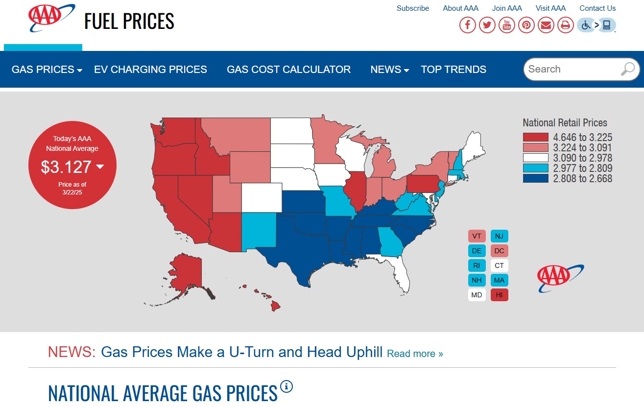 AAA and Gas Buddy track the national average gasoline price daily. We took screenshots of the average national gas price on the day our Tesla advertisement popped up in our inbox. According to AAA, the national average was not $3.90 but $3.127.