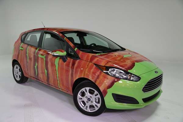 Ford tries very hard to stay current in the American culture and tastes and then incorporate those into its products. It once released the interior volume of the Ford Escape measured in beer pong balls. Now it has tapped into the foody culture sweeping America. The new Bacon wrapped 2014 Ford Fiesta is being launched by Ford in three versions. The car is part of Ford's recognition of August 31st, Bacon Day.
