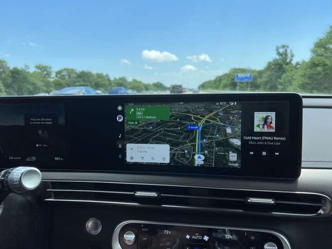 The infotainment system is mostly the same as Hyundai’s IONIQ 5 And Kia’s EV6. The now-familiar, wide wrap-around infotainment display is still very cool. Oddly, the GV60 requires a cord to operate Android Auto and Apple CarPlay. The Bang and Olufsen audio system is about as good as it gets, very different in its quality than the IONIQ 5’s system.