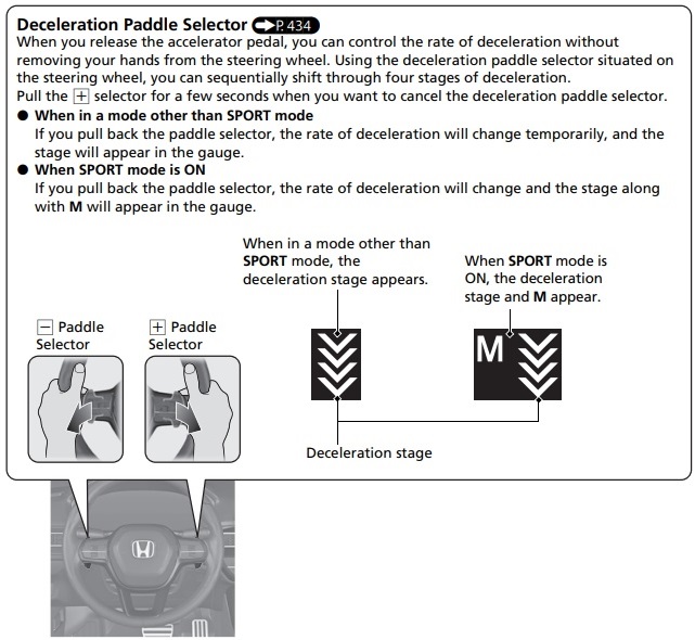 Honda has set up the Civic Hybrid-electric hatchback as an EV that combines its total system power to move the vehicle with its dual-motor electric propulsion system. It is very rarely pushed directly by the IC engine. In day-to-day driving, it feels and sounds like a battery-electric vehicle. The paddle shifters allow the driver to change the brake regeneration force in 4 steps. It’s fun and feels a bit like downshifting a classic car.