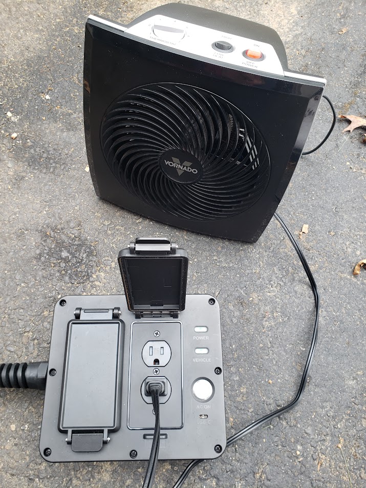 We tested the Powerbox using a 1,500-watt space heater. Although they are small in size, space heaters are one of the biggest energy gluttons one can operate on 115-volt power.