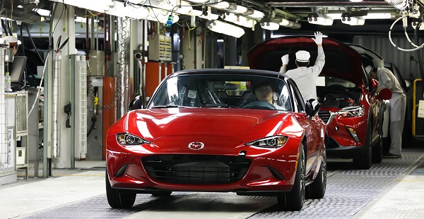 If you look at the photo at the top of the story, you will notice two things. First, the Miata has the steering wheel on the correct side for the North American market. Second, the Asian worker inside has his head cocked to the side as if there is not enough headroom for him to fit. Good news bad news as the saying goes. Look closely, and you may also be seeing a CX-3 in the background. It is hard to tell.