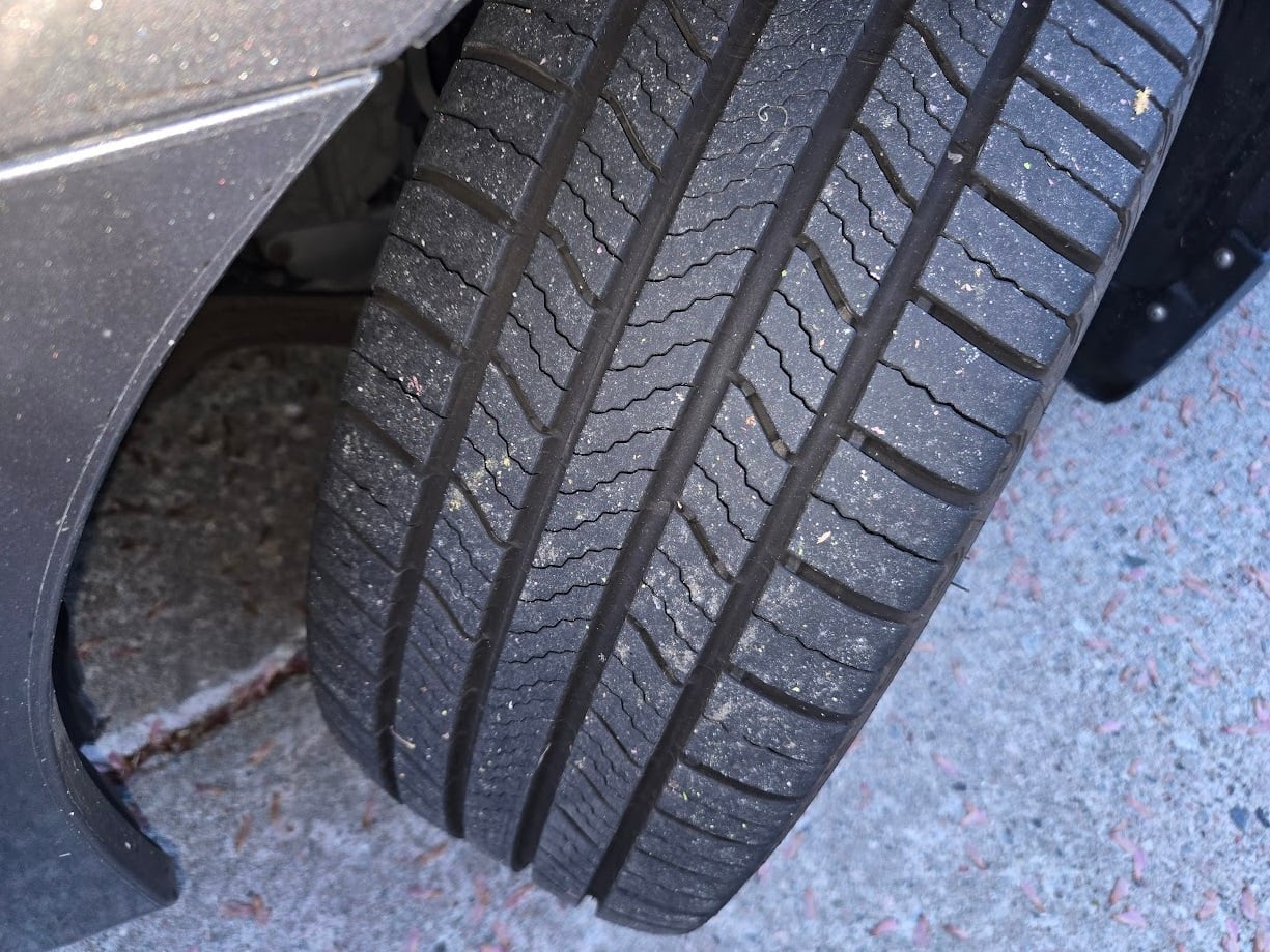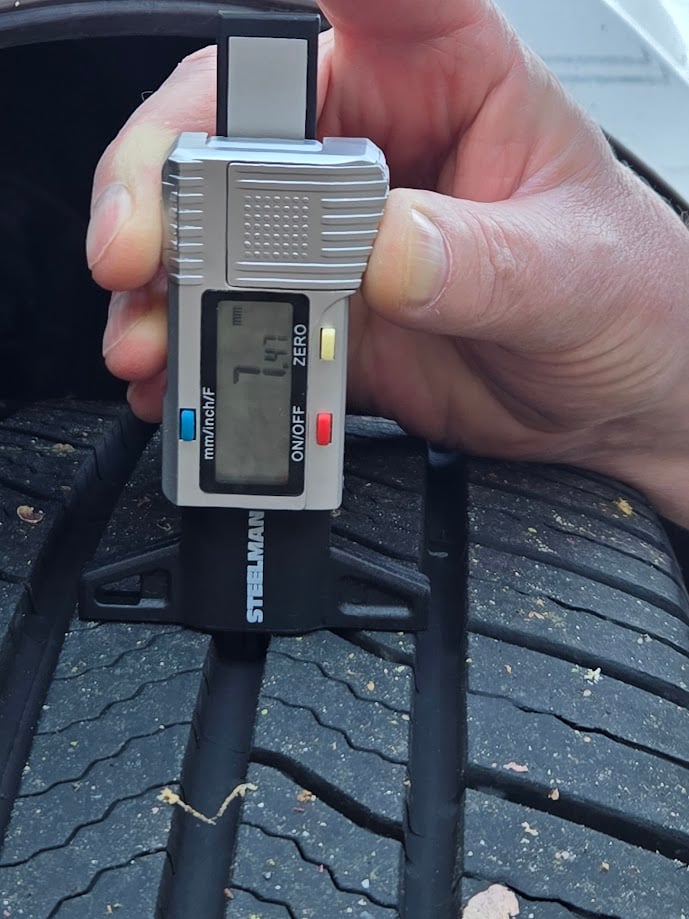 When we mounted the Michelin Defender2 tires, we measured the tread depth at 8.64 mm. Now, having driven in four seasons in New England and having covered about 14,500 miles. The tread depth measures 7.47 mm. Therefore, roughly 1 mm of depth was worn away. We would consider this excellent news. This is not a surprise and is in line with our expectations of such a tire. Tire treadwear is not linear. We would not necessarily expect the depth to be reduced the same amount per mile over its lifespan. The good news is that the tires are showing no signs of premature wear.
