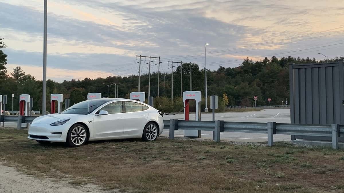 One clever Tesla owner of a white Model 3 must have planned this move. The owner avoided the slowdown on 93 South on a Fall Sunday evening and parked perfectly in order to charge up at the Hooksett charger location. As you can see, the vehicle is actually behind the Supercharer. It is not in the designated lot, or parking spot.