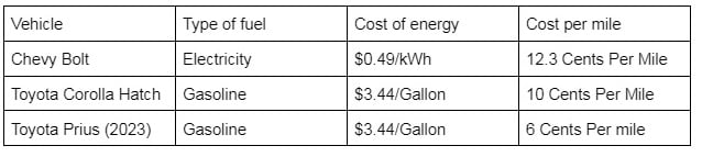 I have owned electric cars for over 10 years and have not paid a dime to charge any of them. I have 3 free level 2 chargers within a mile of my home. I also can travel up and down California's main interstates and enjoy fast charging provided free from the state's taxpayers at conveniently placed rest stops. The choice of Prius versus Bolt was a no brainer for me. My advice is to check out what free charging options are available near where you live before you decide whether to go EV or not.