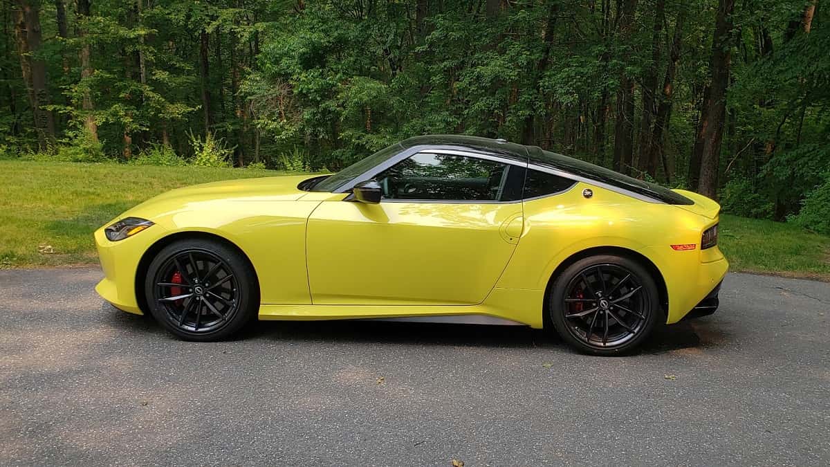 The Nissan Z earns fans on the basis of looks alone. Everywhere we took the new Z, it attracted a crowd of admirers. Our latest tester was painted in a brilliant two-tone Ikazuchi Yellow TriCoat (a $1,295 option) that we felt really made the Z’s styling pop.