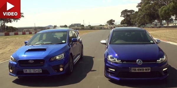 Cars.co.za took the new Volkswagen Golf R and 2015 Subaru WRX STI out to Killarney International Raceway where they also have a drag strip. Both cars come with very capable all-wheel-drive systems and I have no doubt the STI would definitely be quicker around a track with its rally-bred suspension. In this quarter mile drag race, the WRX STI can’t keep up with the Golf R with the 6-speed DSG double-clutch automatic transmission. Cars.co.za says, “We ran the race multiple times and this was the closest result.”