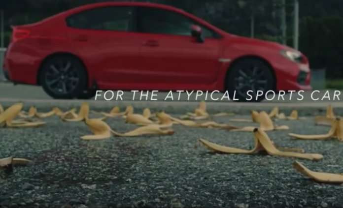 Subaru Canada says it’s the atypical 0-100 km/h test for the atypical sports car. It’s a crazy test that Subaru Canada came up with. Subaru likes to takes the WRX and WRX STI performance cars and do crazy stuff like take it down a bobsled run. Now, they took hundreds of banana peels, spread them out over a 100km track and sprayed it down with water to make sure it was extra slick.