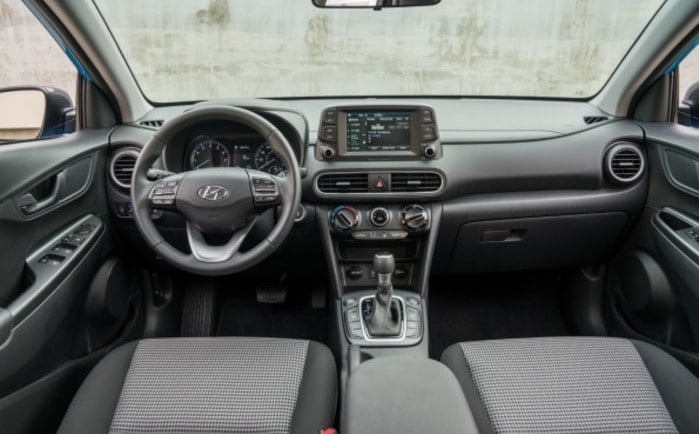 Stepping inside the Kona reveals a stylish dash with an 8-inch central touchscreen with navigation and a rearview monitor. Android Auto and Apple CarPlay also come with this upper-trims infotainment system. Material quality is what you would ex[ect for this price point, offering hard plastic panels, and some textured and soft-touch surfaces. Overall, the interior is visually appealing.
