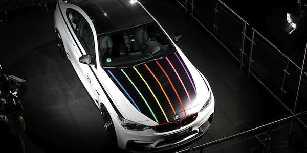 M4 DTM Champion Edition gets a unique livery just like Wittmann’s Ice-Watch BMW M4 DTM racer. It features matte black across the hood, the roof and the rear deck as well as rainbow colored racing stripes. The number 23 is also included on the doors and the Champion Edition M4 is finished exclusively in Alpine White.