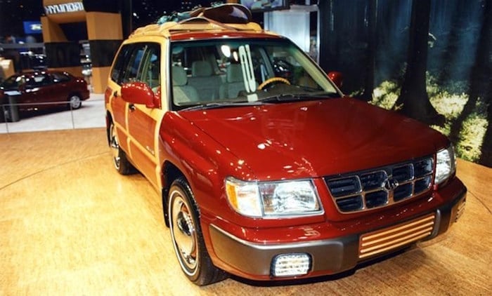 Unless you went to the Chicago Auto Show in 2010, you likely never saw the 1999 Subaru Forester Woody. Subaru’s small SUV was transformed into a “woody” as a concept vehicle and it was first unveiled at the 2010 Chicago Auto Show. It was a 1999 Forester model and had genuine Philippine mahogany and white ash wood veneers applied to the wagons doors and rear fender with special adhesive.