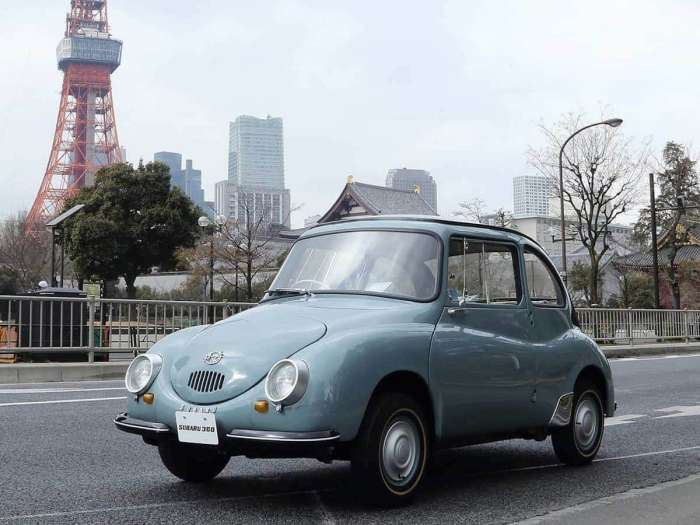 In 1968, Subaru introduced the 360 as an inexpensive yet distinctive economy car. It was “Cheap and Ugly”, powered by a two-stroke engine, the Subaru 360 claimed 66.3 mpg and sold for $1,297. It was $300 cheaper than the VW Beetle and was 1000 lbs. lighter. But you took your life into your own hands by buying one. The 360 was Subaru’s first mass-produced minicar and it’s been preserved by Subaru Corporation manufacturer of Subaru vehicles in their museum in Japan.