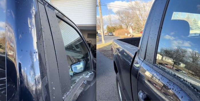 "Now, it doesn't have any effect on the truck whatsoever; it's not leaking water into the cab. The weatherstripping is all good; nothing is getting wet; it rained and snowed all night."