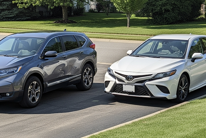 Jarod's 2019 Honda CR-V is parked next to his 2020 Toyota Camry