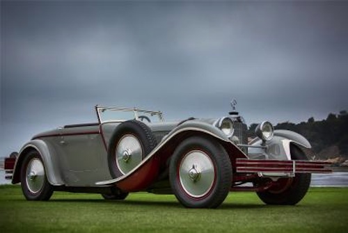 The car was originally designed by French coachbuilder Jacques Saoutchik and delivered to Charles Levine in New York City on August 2nd, 1928. The car with torpedo style bodywork and a low windshield was named the finest vehicle on display at the prestigious Monterey event. The magnificent car was kept in storage for 30 years before current owners Judy and Paul Andrews of White Settlement, Texas, had the car extensively restored.