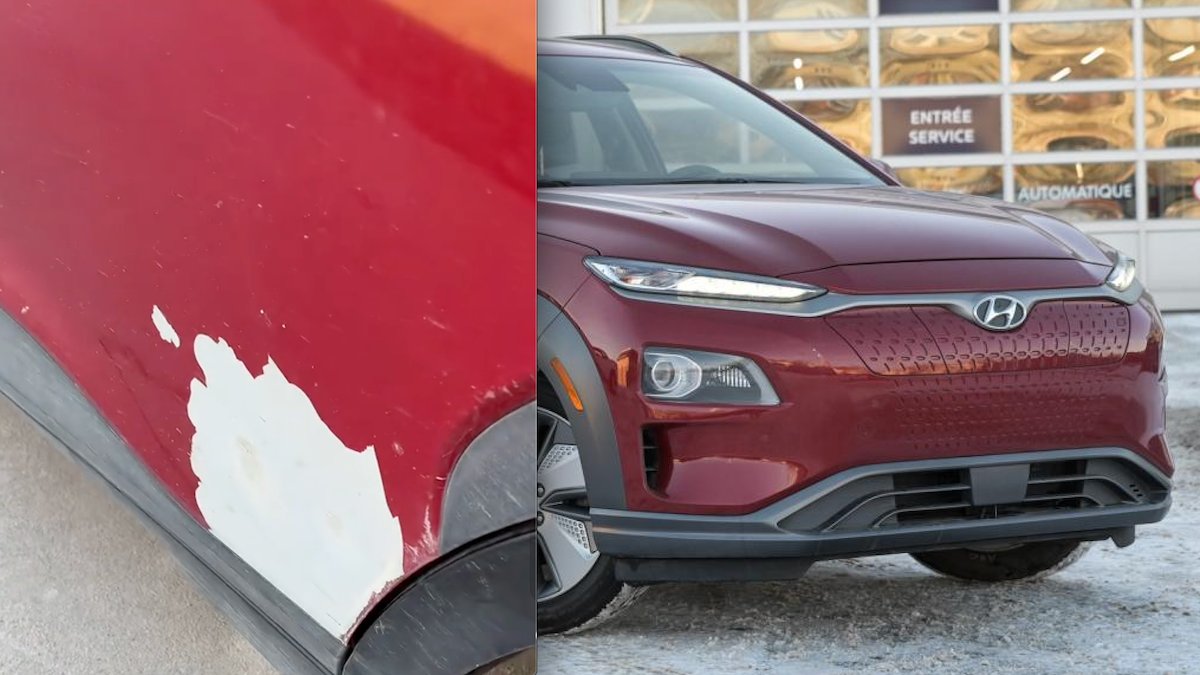 "This is my 2021 Hyundai Kona. For the last few months, the paint literally fell off my car. When I took it into Finch Hyundai to the auto body shop, they reached out to Hyundai Canada."