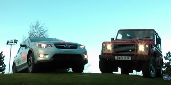 Only someone with zero off-road experience would think that the Subaru can come close to the Defender in off-road ability. This test track is pretty contrived. Chuck them both through some mud, or a steep climb that requires axle articulation, or some soft sand and watch the Subaru fail.