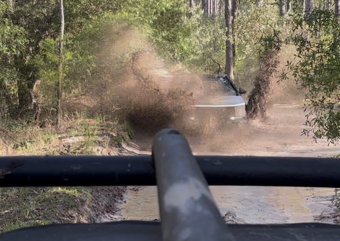 In the Tesla Cybertruck Facebook Owners page post he says, "I had an absolute blast on the trails today! My Cybertruck tackled deep mud, classic sketchy Florida sugar sand, and even threw in some light crawling for good measure."