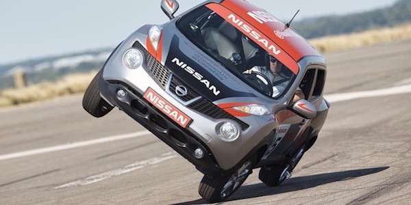 Driving on two wheels or "skiing" is a stunt made famous over the years from James Bond films, Knight Rider and the Dukes of Hazzard among others. The feat requires precision, advanced handling techniques and a good deal of driver instinct. Now the Nissan Juke gets in the two-wheel act.