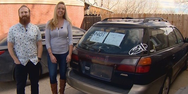 Katie tells KUSA, "It started about a month-and-a-half ago. I had a guy knock on the door, and he didn't introduce himself. He just said, “Can I buy your Subaru outside for more than it's worth?” She looks at him, stunned, and says “no”, but the couple keeps getting offers and many notes have been left under the windshield wiper asking if they want to sell their Outback.