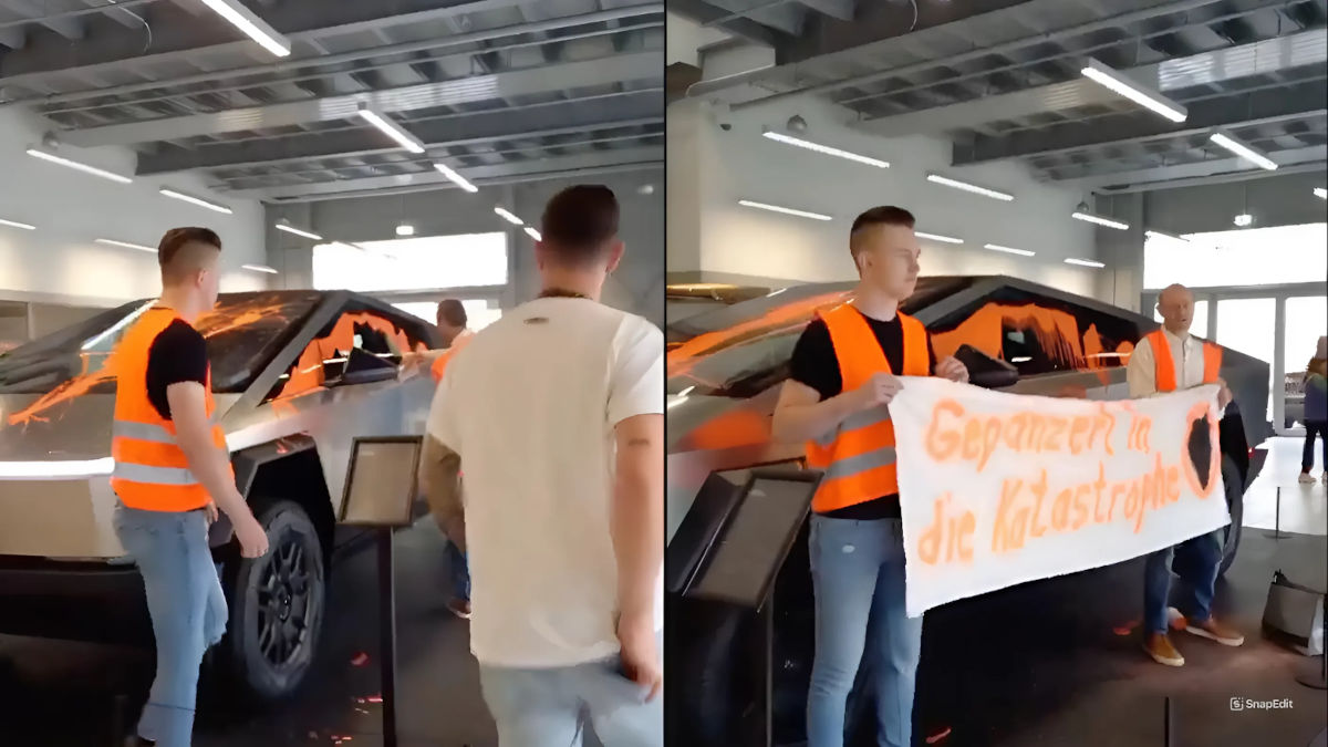 This time, their preferred course of action is vandalizing a Tesla Cybertruck displayed at a Tesla store in Germany, a disturbingly persistent pattern of behavior.