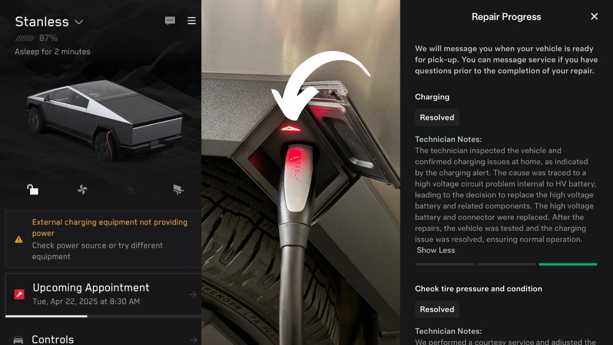 “My Foundation Series Cybertruck AWD stopped charging at home at the beginning of April 2025. I took it to a supercharger, and it would charge there, so I thought my 6-year-old home charger bit the dust.