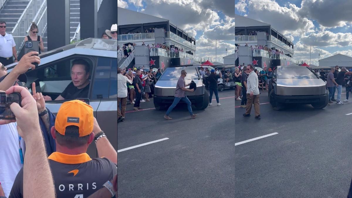 BREAKING!! 🚨 @elonmusk rolling in & out of Austin F1 in Cybertruck 📐 @SawyerMerritt @teslaownersSV @WholeMarsBlog @AustinTeslaClub #F1 #USGP pic.twitter.com/O85UfSS8Dg