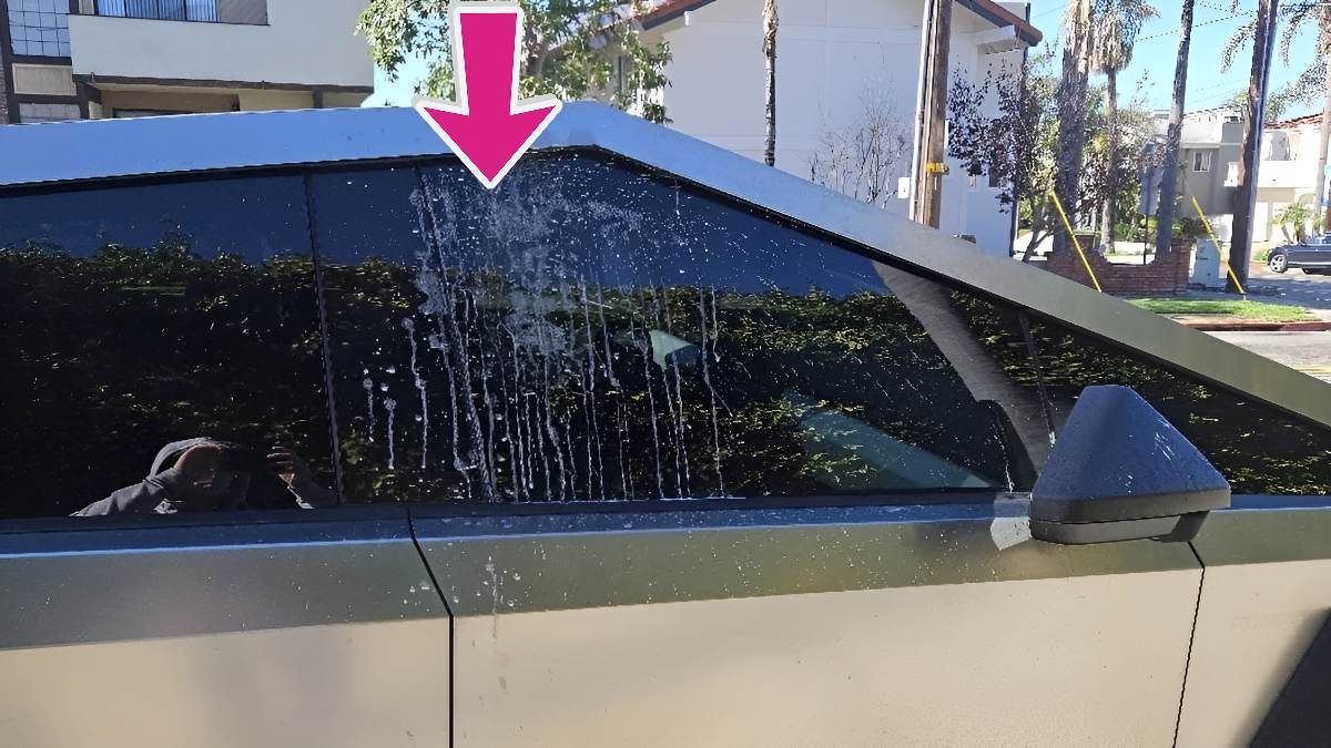 However, from what we can see in the picture, it appears a drink from a container had been through onto the Cybertruck with considerable force.