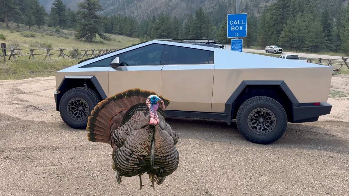 The Cybertruck owner says there is a large flock of wild turkeys in his area, and the FSD software doesn’t know how to handle them.