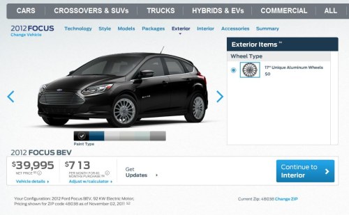 After all this time, we finally get the good news as of today that Ford Motor Company (NYSE: F) will avail drivers that want to go completely gasoline-free can configure the all-new 2012 Ford Focus Electric online at Ford.com and place their orders with a Certified Electric Vehicle (EV) dealer. Well, I'm not buying Ford stock on this news alone.
