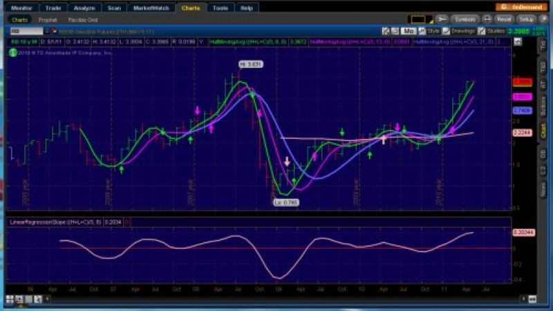 Look at that monthly chart of gasoline futures. And in case you’re wondering, that old $3.63 futures high price occurred in summer of 2008, but does not take into account sales and road taxes. It’s pure gasoline related.