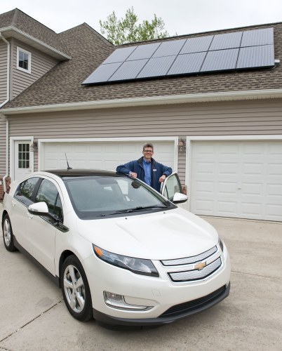 "I made the switch to renewable energy a while ago, and thus with solar energy, I can power my house, charge my Volt and pump energy back into the grid, which I get credit for," said Hildebrandt, owner of Sunventrix in Saline, Mich., and one of the first Volt purchasers in the state.