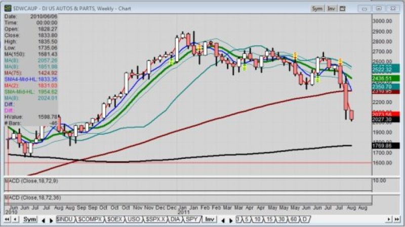 One look at the chart, though, shows automotive and parts following the direction of the general market. In reality, the downgrade for the auto stock sector began in early July. Note the sell signal based on a simple crossover of two moving averages.