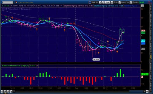 Ford stock opened lower this morning relative to yesterday‘s close of 9.37, but had shown some resilience after the Ford media communication surrounding the agreement, only to fall back below the upper price gap during ht efirst hour. Then again, it’s early; so there is plenty of trading day left for the information to filter into traders’ minds.