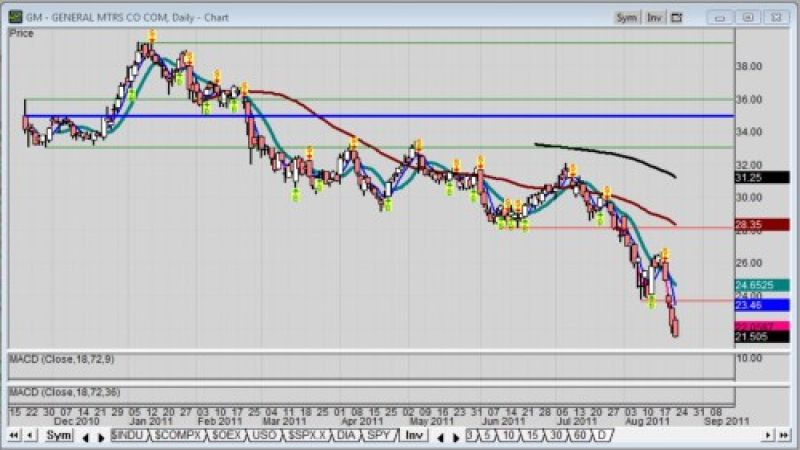 Question a few days ago was, would the stock’s higher close with support at the Aug 8th low of 23.79 define the beginning of a long or short-term bull pattern for General Motors stock? Well, we seemed to have that answer as a definite - no; because GM stock broke through that level on Thursday, Aug 18th. And today’s price action has forced the stock solidly below 22 for the first time since its IPO.