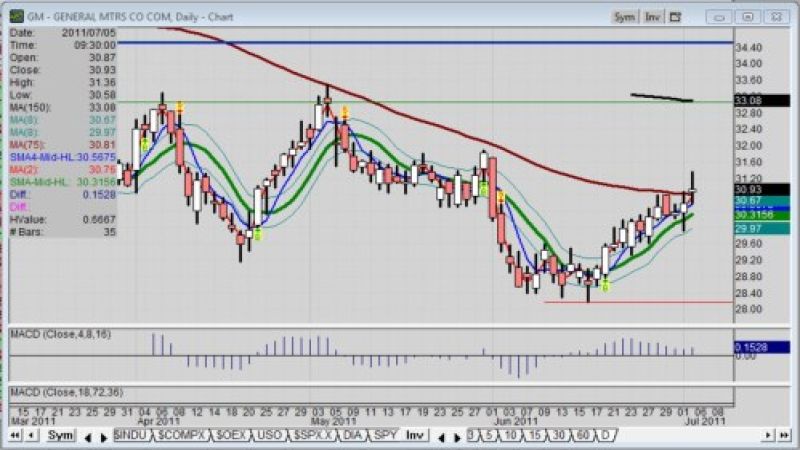 Where does GM stock go from here is anyone’s guess, but the chart pattern seems to indicate the June low is strong support and confirmed as a lower limit, at least for the meantime. If it wasn’t, then the price pattern wouldn’t show strength to the upside at this juncture.