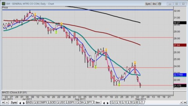 Even as recent as Tuesday morning’s first hour of trading after Labor Day, GM stock opened lower and cracked a lower low than the previous swing low of 21.18. It recovered a bit, but not by much; and the day has just started. The general market as I write has the Dow down again over 200 points.
